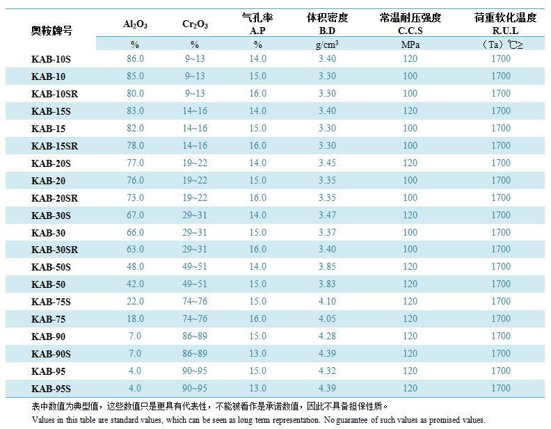 鉻剛玉磚是奧鞍的王牌產(chǎn)品之一。從10%到90%不同氧化鉻含量構(gòu)成了鉻剛玉產(chǎn)品(KAB)豐富的產(chǎn)品系列,可滿足不同應(yīng)用場景使用環(huán)境的要求。依據(jù)產(chǎn)品性能特點(diǎn),分為通用型、加強(qiáng)的S型和熱震增強(qiáng)的SR型三大序列。